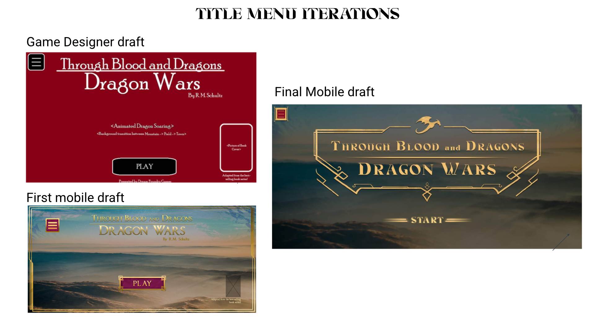 The UI for video games comes in multiple parts. There are menu designs necessary for the players to be able to navigate the various options that they may have prior, during and after interaction with the game world. Then, there is the game HUD (Heads Up Display) which is how the player interacts with the game world itself, during play. A third part that was not necessary for this project could be a website for the game, which is usually a marketing tool that can allow the users ability to reserve, purchase, and obtain news for the game. For Through Blood and Dragons, the client wanted to self-market, and use Steam as the main hub for platforming the title, and delivering information to players about developer updates, new content, and ability to purchase the game. (Note: As of this current case study, Through Blood and Dragons is slated to also release on XBox)